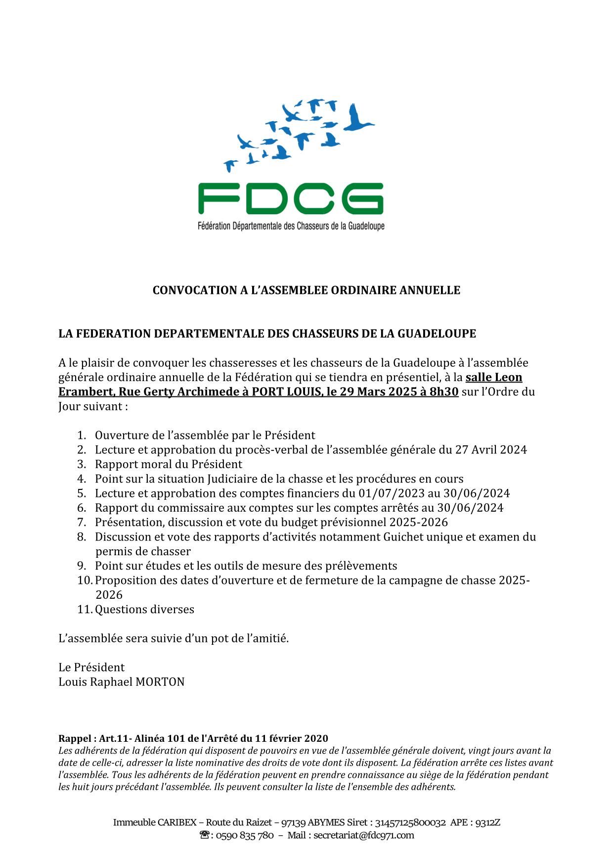 CONVOCATION ASSEMBLEE GENERALE ORDINAIRE ANNUELLE 2025